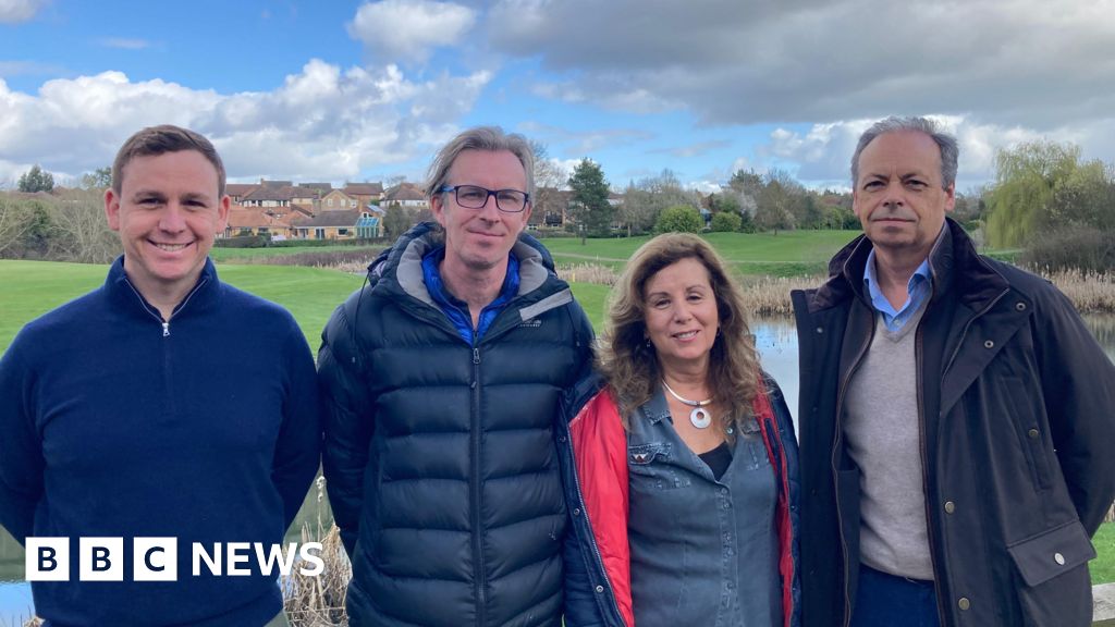 Laura Coffey/BBC Three men and one woman are posed standing on a golf course.Laura Coffey/BBC