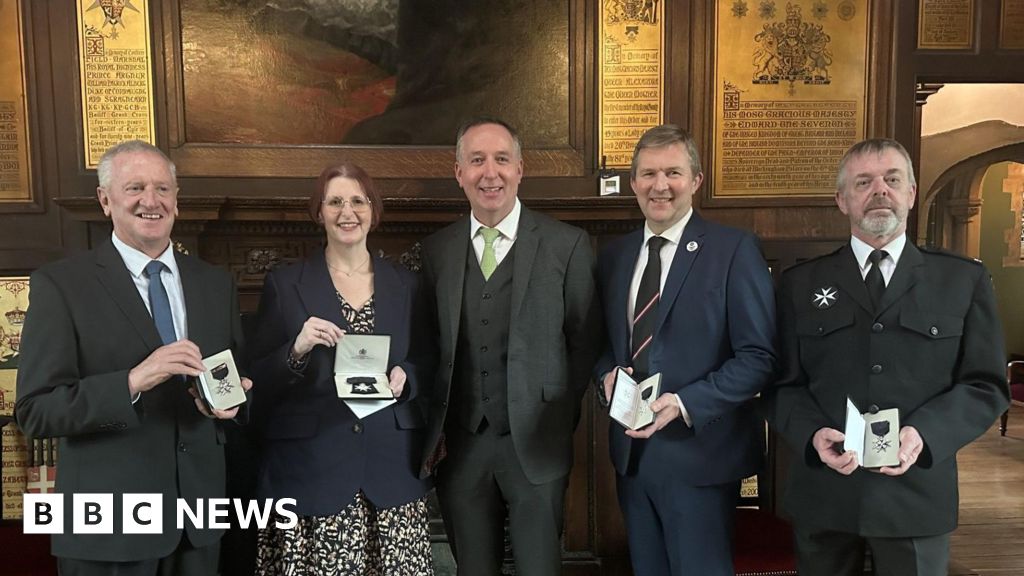 Nicola Hoyland-Birch, Andy Lowe, Alan Stevens and Jim Cathcart from Guernsey were all recognised for their services at a ceremony at St John's Gate in London.