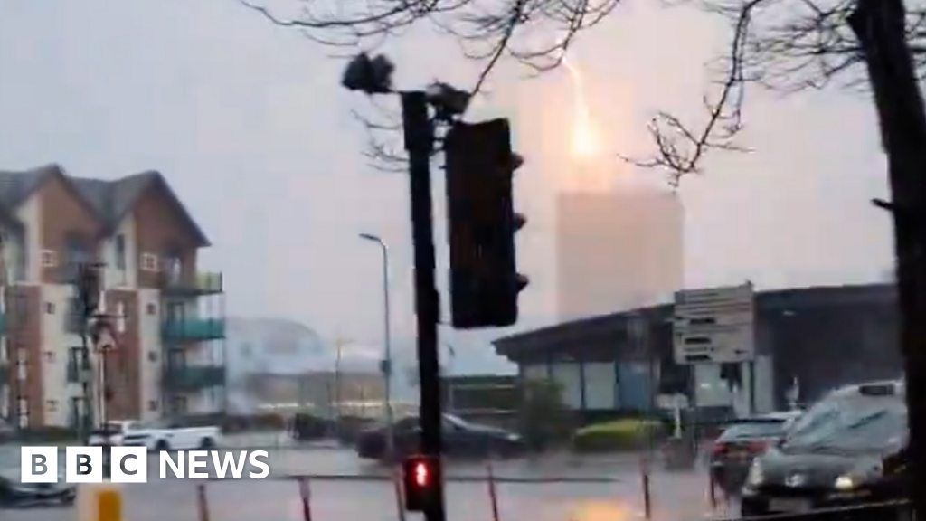 This is the dramatic moment lightning struck a city centre hotel in south Wales.