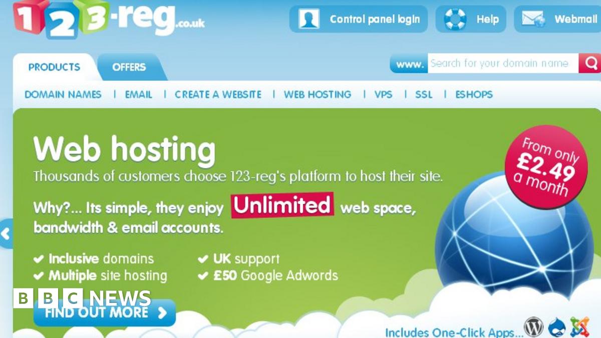 <link> <caption>A statement on its site</caption> <url href="http://www.123-reg.co.uk/support/system-status/" platform="highweb"/> </link> said "issues with our DNS servers... will affect email and initial loading of pages".