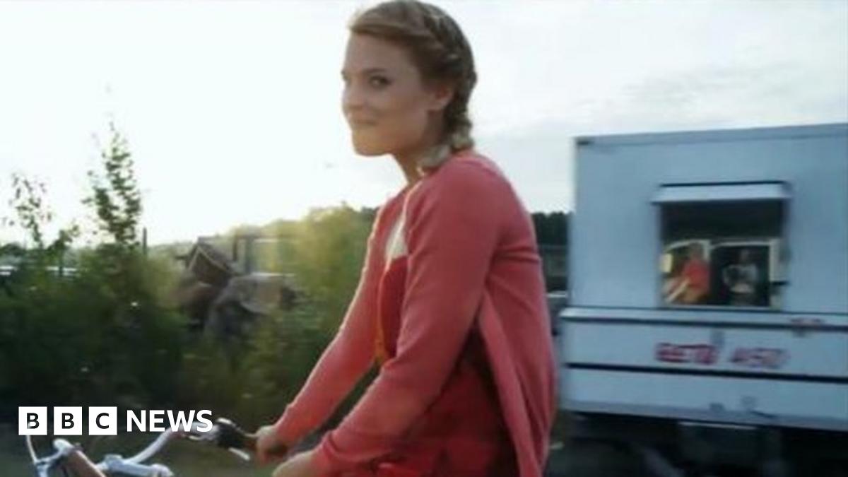 The advert showed, external a man filming his girlfriend using the new smartphone while both of them were riding bicycles.
