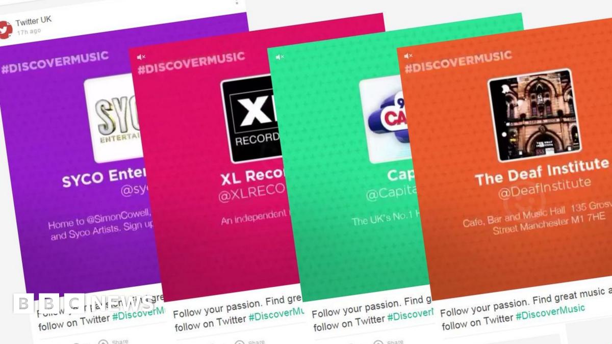 A series of brightly coloured screens promoting Twitter pagesImage source, Twitter uk