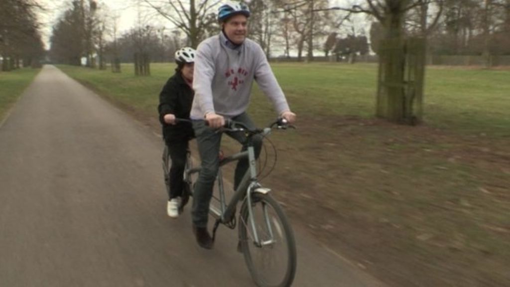 Presenter Paddy O'Connell helped listener and charity fundraiser June Bowden, who is blind, take her "Leap for PM", riding a tandem bike for the first time.