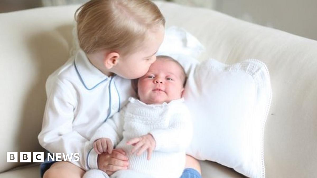 The pictures show the Princess Charlotte being cradled by Prince George
