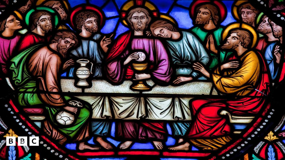 At the Last Supper, Jesus - who Christians believe is the son of God - blessed the bread and the wine, sharing them with his disciples.