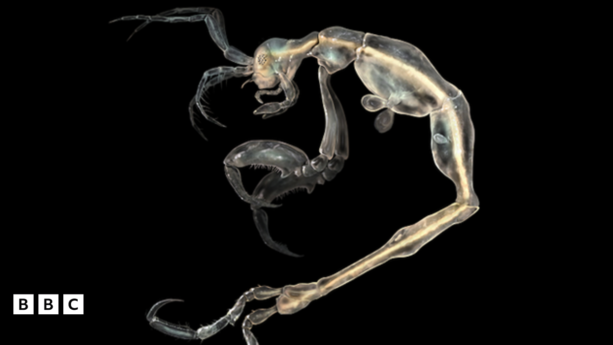 This translucent alien-like creature is actually a new skeleton shrimp. It's tiny - about the size of a grain of rice - and lives in the waters off the coast of California in the USA. The top 10 is chosen by an expert panel from about 18,000 new species found in the past 12 months.