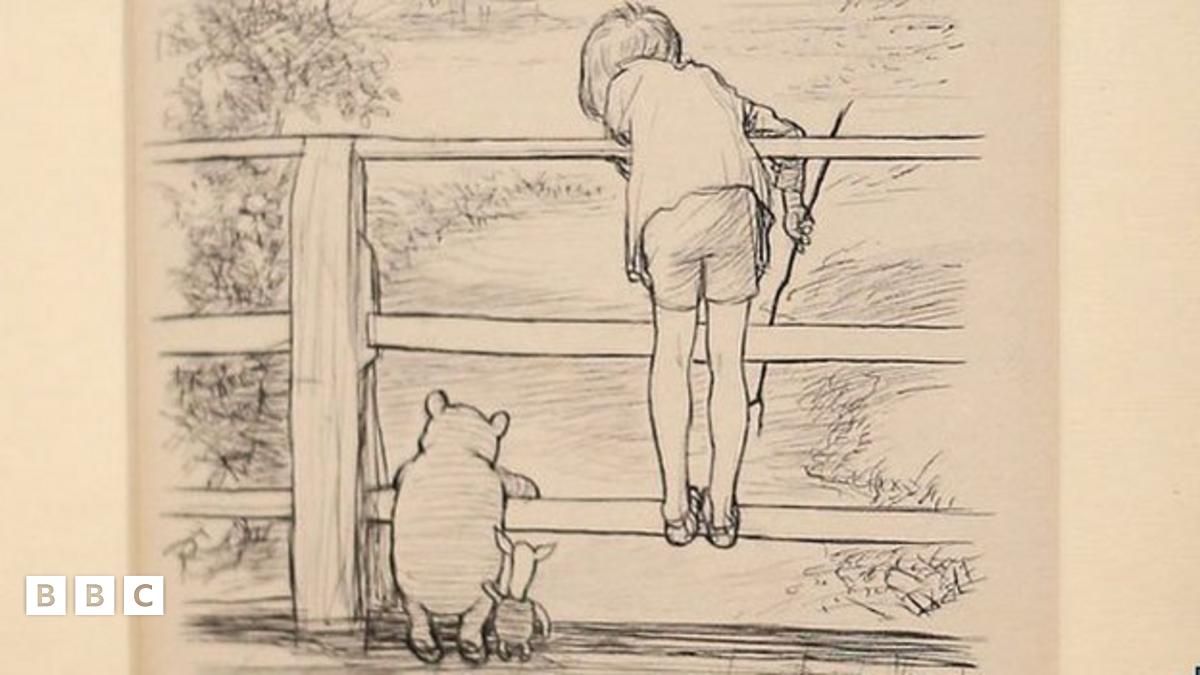 The famed drawing, entitled 'For a long time they looked at the river beneath them…' is set in chapter six of the book, which was called "In which Pooh invents a new game and Eeyore joins in".