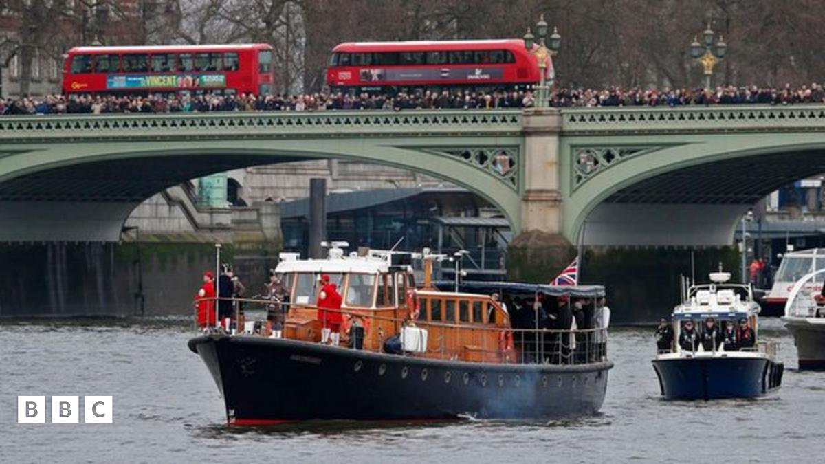 A wreath was dropped into the river, in memory of the former leader who is famous for leading Britain to victory in World War Two.