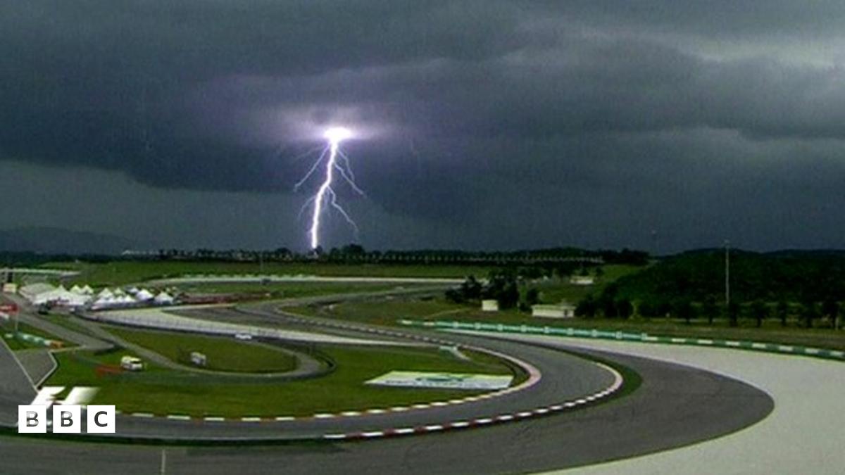 Lightning, thunder and heavy rain delayed the start of the Malaysian Grand Prix for more than half an hour.