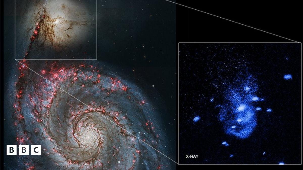 The black hole at the centre of NGC 5194 probably gorged on gas from the small galaxy's much bigger, spiralling neighbour.