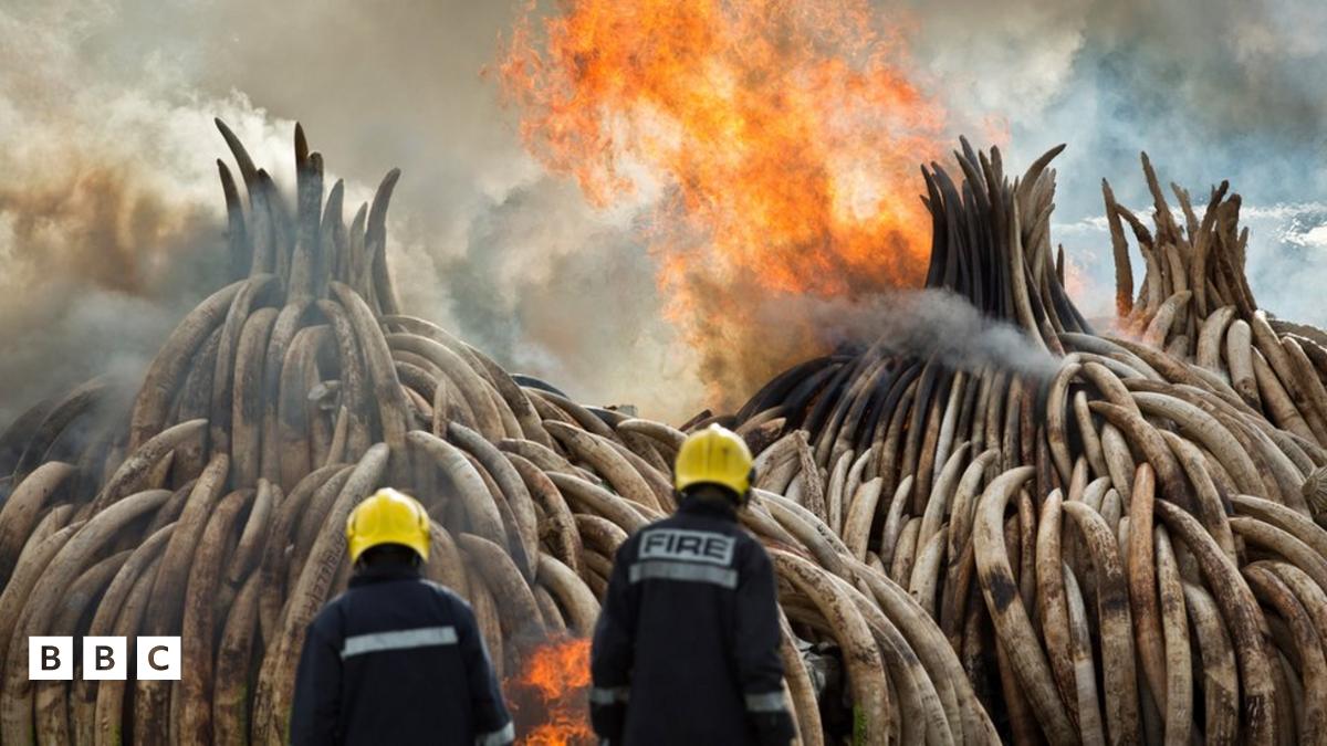 Pictures: 100 tonnes of poached ivory set on fire in Kenya
