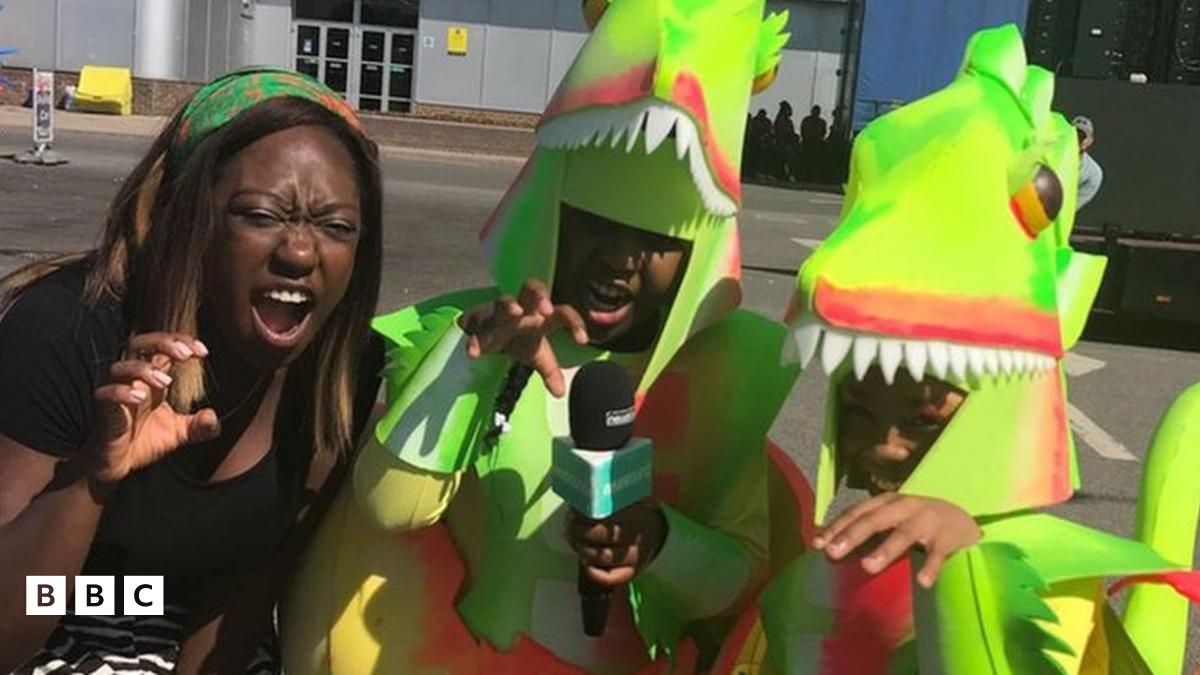These girls dressed up as dinosaurs as part of their Carnival parade.