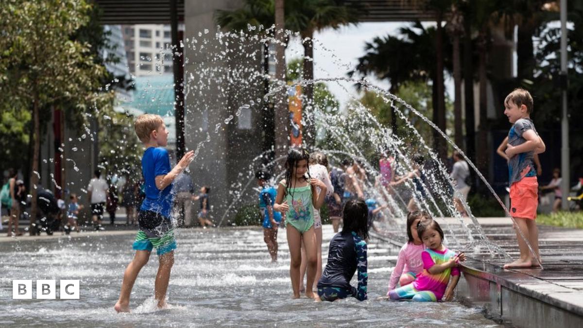The temperature hit a scorching 47.3C yesterday, making Sydney the hottest place on Earth - and the heatwave has continued today. Here, we can see families cooling off at Darling Harbour.