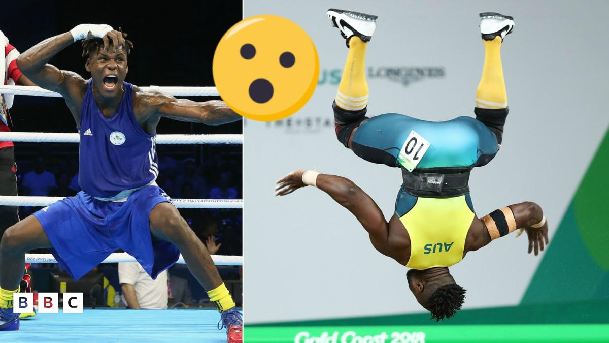 Woah, what on Earth is going on here?! An upside down flying man!? Well this is how Australian weightlifter Francois Etoundi likes to celebrate a good lift! Here he is mid-flip during the 77kg final. He came third despite having an injured shoulder. Flipping fantastic!