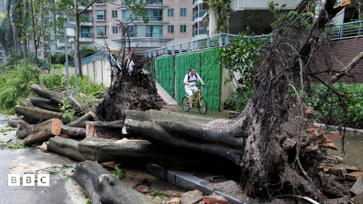 In Hong Kong, the storm wrecked buildings and shut down the city.