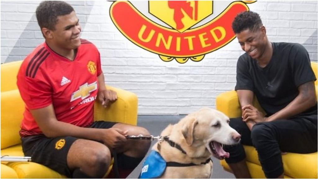 Man United's Marcus Rashford meets 15-year-old blind footballer