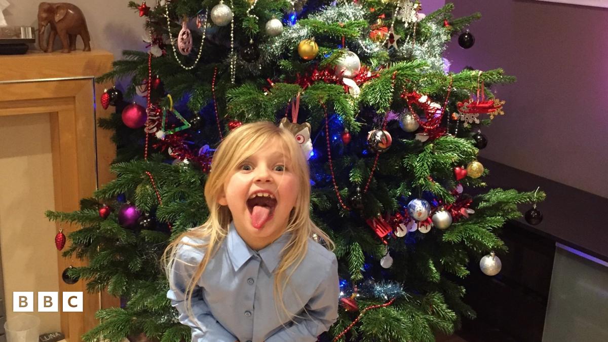 Seven-year-old Hannah looks cheeky in front of her Christmas tree in Nottingham. We wonder if she and her family got it from the famous Sherwood forest!?