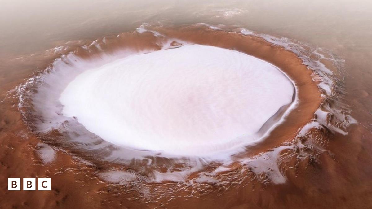 This ice-filled crater is called the Korolev crater - it's is 82 kilometres in length and is found in the northern lowlands of Mars.