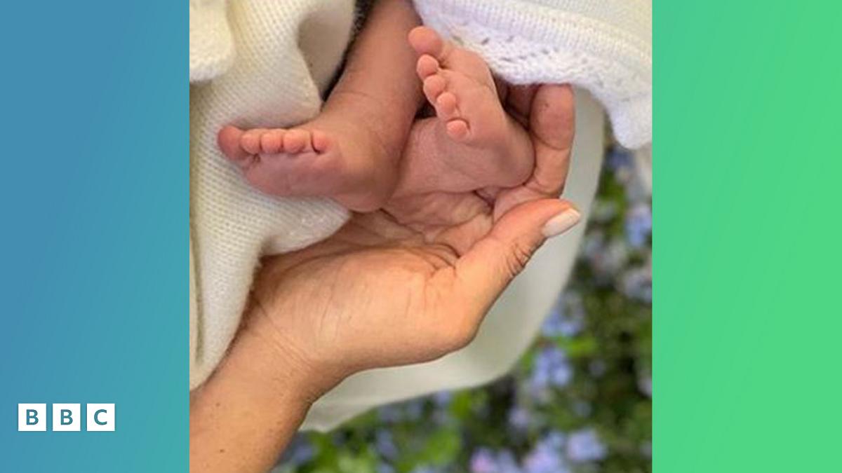 It shows Meghan, who is American, holding her new son Archie's heel.