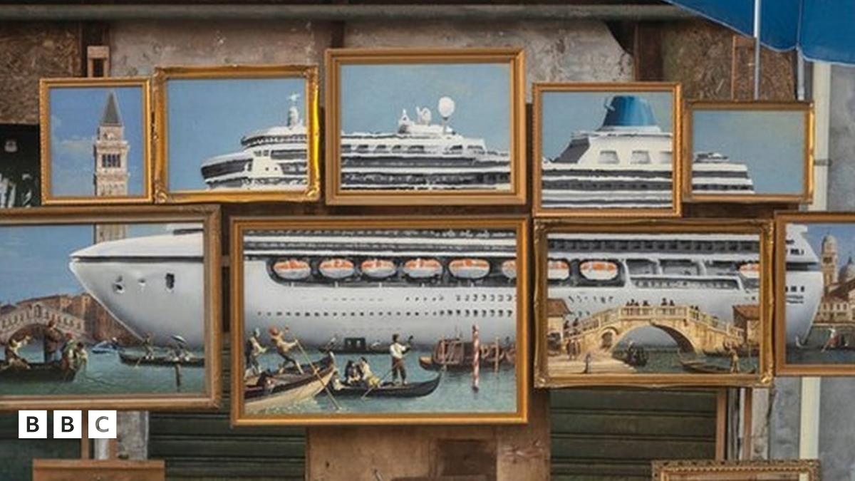Banksy's artwork has appeared in the middle of the city where he highlighted the ongoing issue of big cruise ships docking in the canals in Venice.
