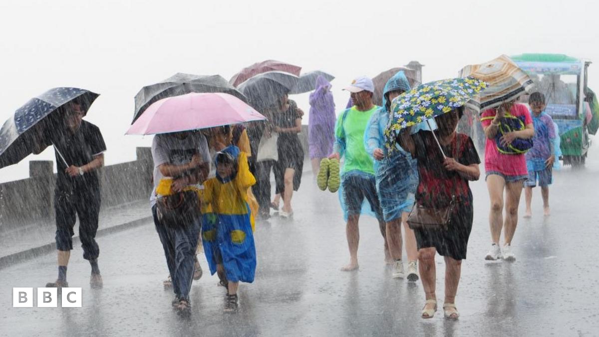 People in China's Zhejiang province try to escape the bad weather caused by the typhoon