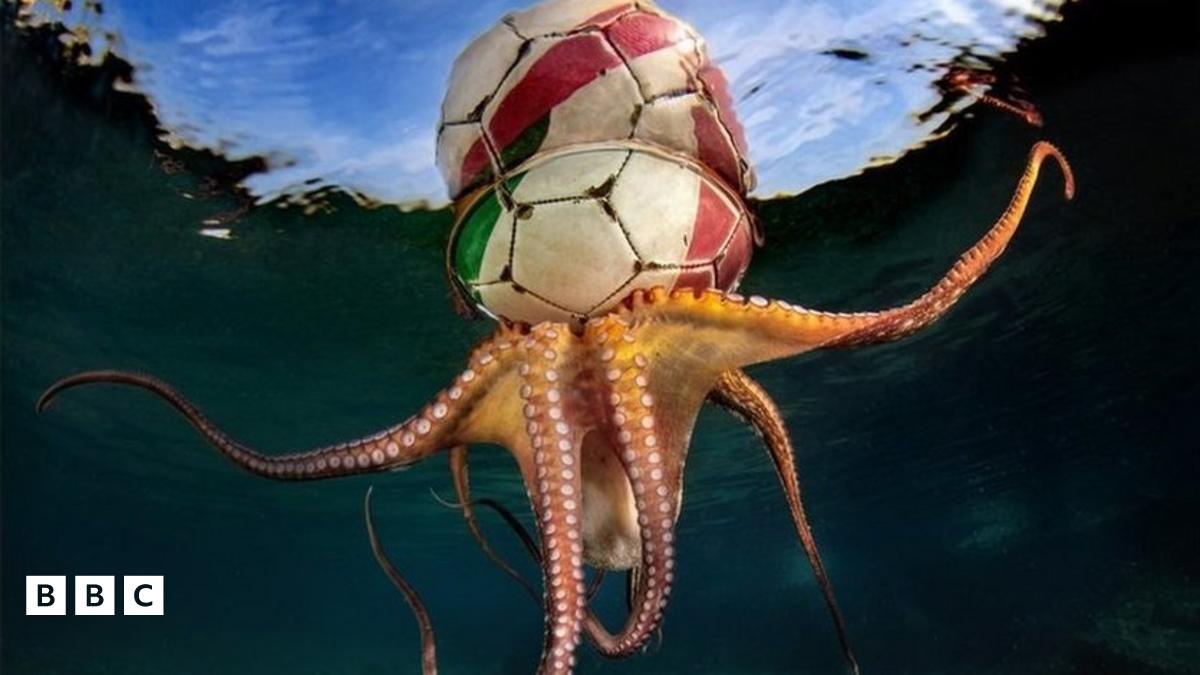 Photographer Pasquale Vassallo took this brilliant picture of an octopus playing football in Italy! "I noticed a soccer ball in the distance and on the surface. Then I noticed that below it was an octopus that was being pulled along by the current. I do not know what it was doing under the ball, but I think it is training for the next football World Cup!"