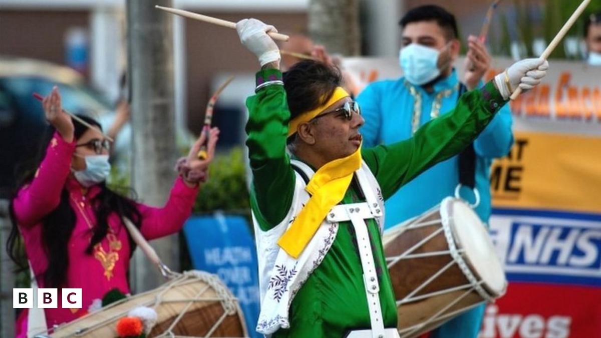 These traditional drummers in Birmingham played music and rhythms to salute the doctors, nurses and staff at their local hospital