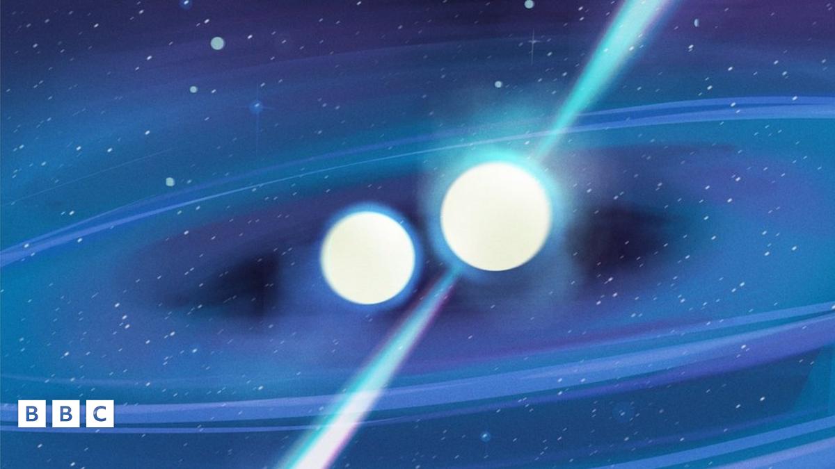 The two stars are locked in a "fiercely tight" orbit, and scientists think they will eventually smash into each other releasing massive amounts of energy - but don't worry, they think this will happen around half a billion years from now!