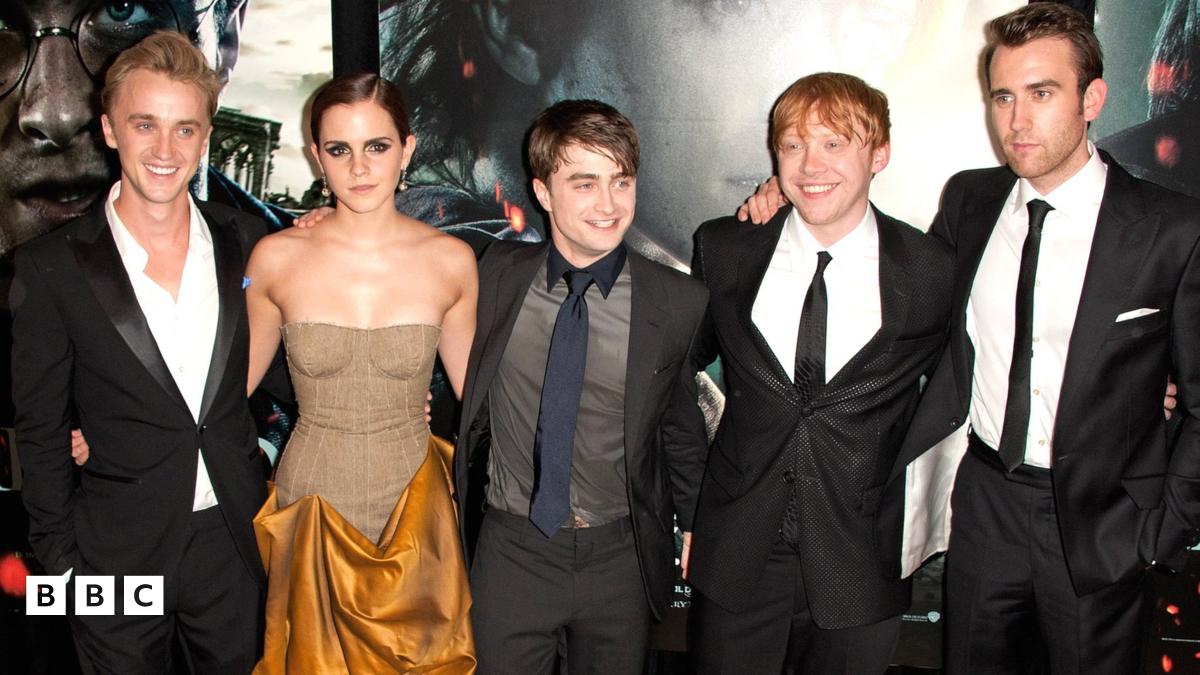 From left to right: Ralph Fiennes (played Lord Voldemort), Daniel Radcliffe (played Harry Potter), Emma Watson (played Hermione Granger), Rupert Grint (played Ron Weasley), Tom Felton (played Draco Malfoy)
