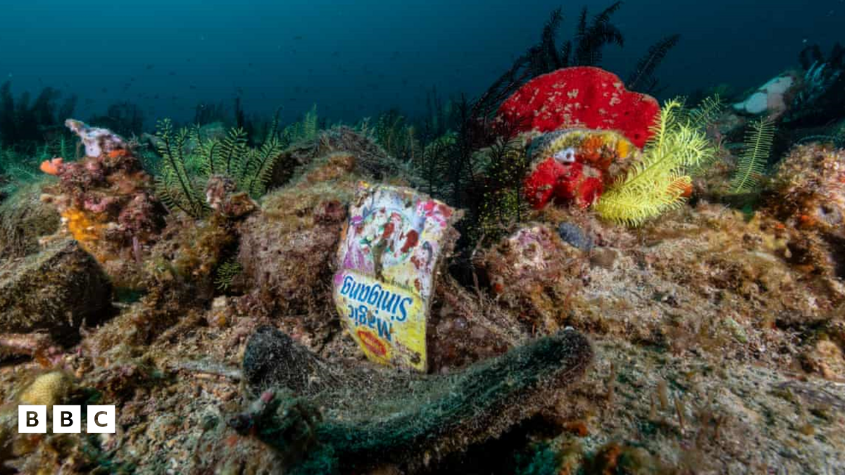 Crisp packet in an ocean.Image source, Will Rose/Greenpeace
