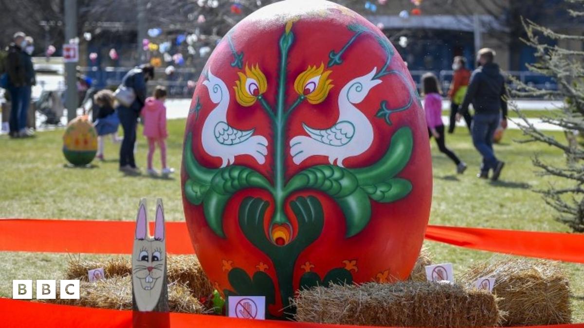 Let's start in Hajduszoboszlo in Hungary where the city's Easter Park has been decorated with lots of painted eggs - some big and some small.