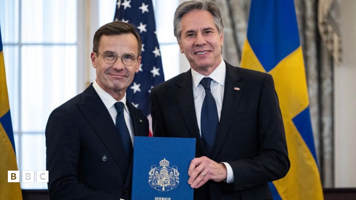 Sweden's Prime Minister was given the official Nato documents in Washington DC, in the USA