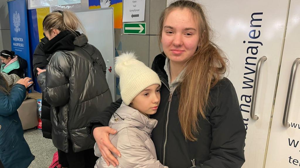 Jenny met two sisters - Anastasiia and Miroslova - who have escaped the war with their mum and hope to make it from Poland to Germany, and also spoke to some of the young people there helping out.
