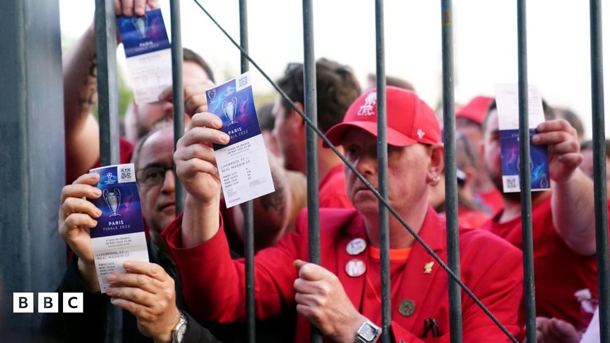 Liverpool fans stuck outside the stadium in Paris held out their match tickets