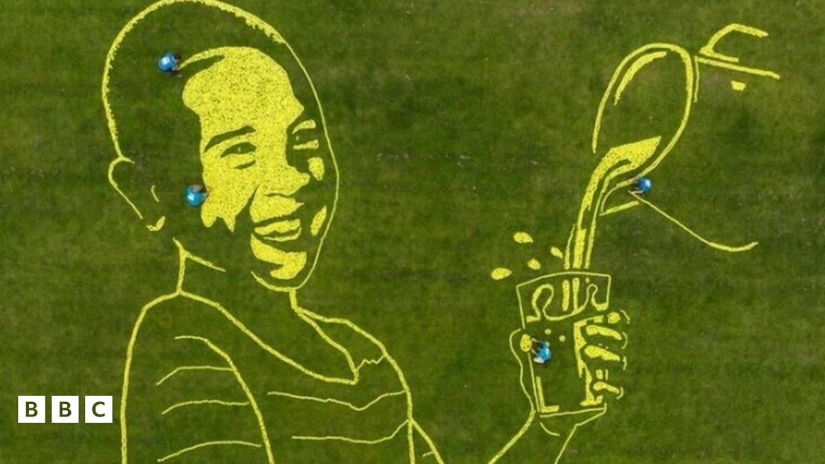 The giant mosaic made from tennis balls, shows Tefy from Antsakambahiny village in Madagascar. Tefy now has access to clean water, he said: "We no longer fetch water down the hill anymore since we have taps in our school. The water here is very clean and fresh."