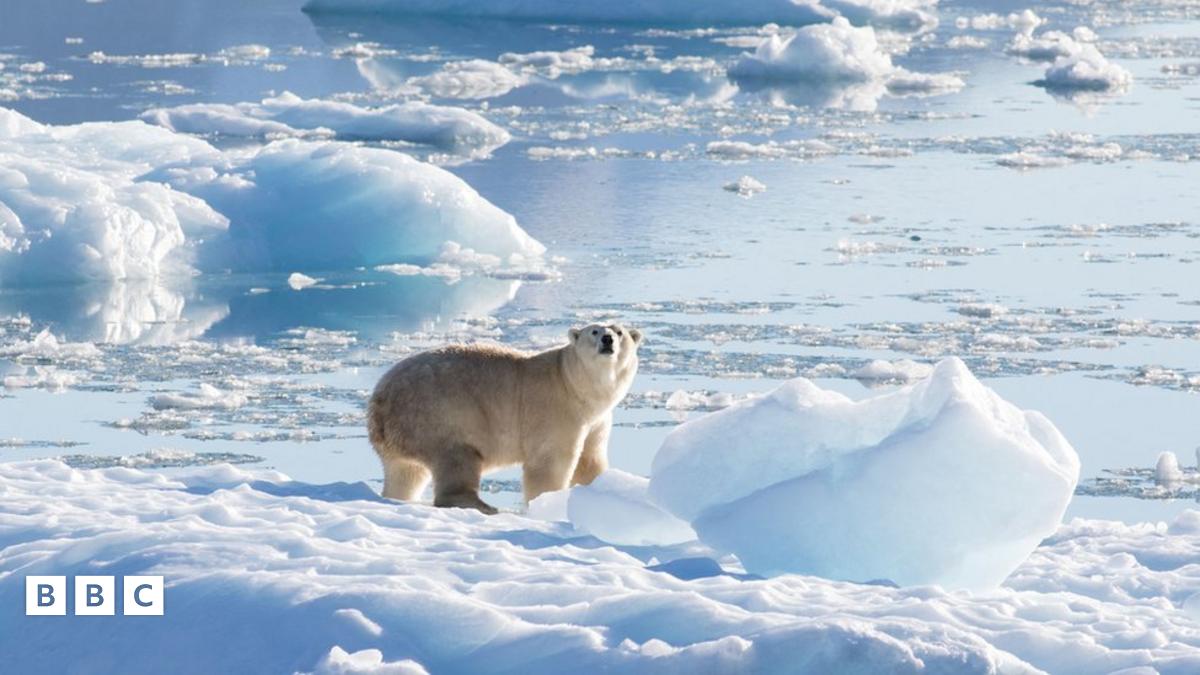 The bears live on ice sheets and rely on Arctic sea ice to to catch their seal prey - so the melting ice puts the species at risk of extinction.