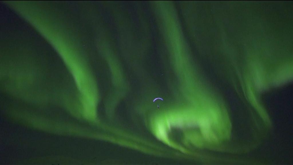 Top paraglider 'dances' under Northern Lights