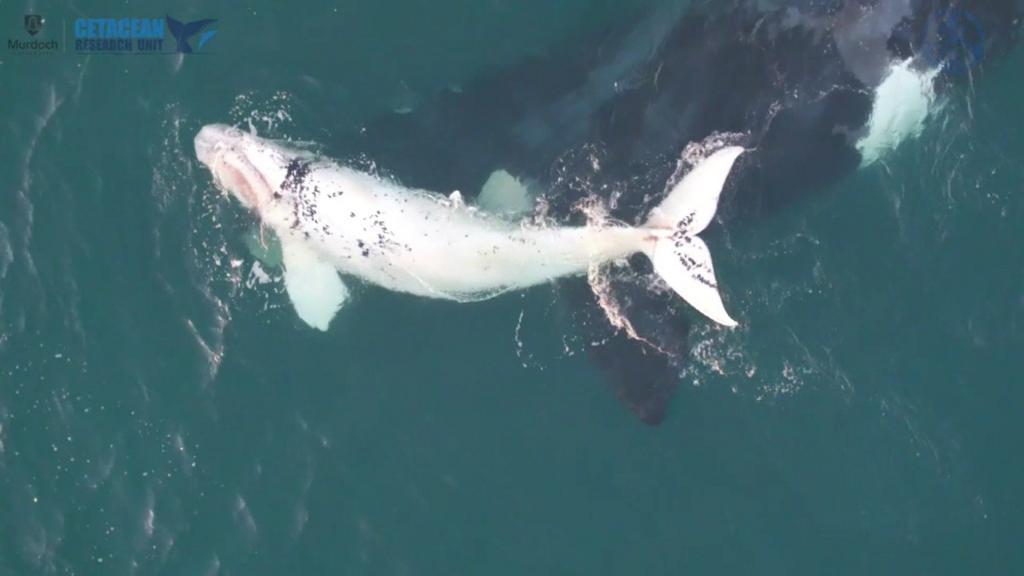 Whale researchers in Western Australia have captured these amazing and incredibly rare images of a white Southern Right Whale calf.