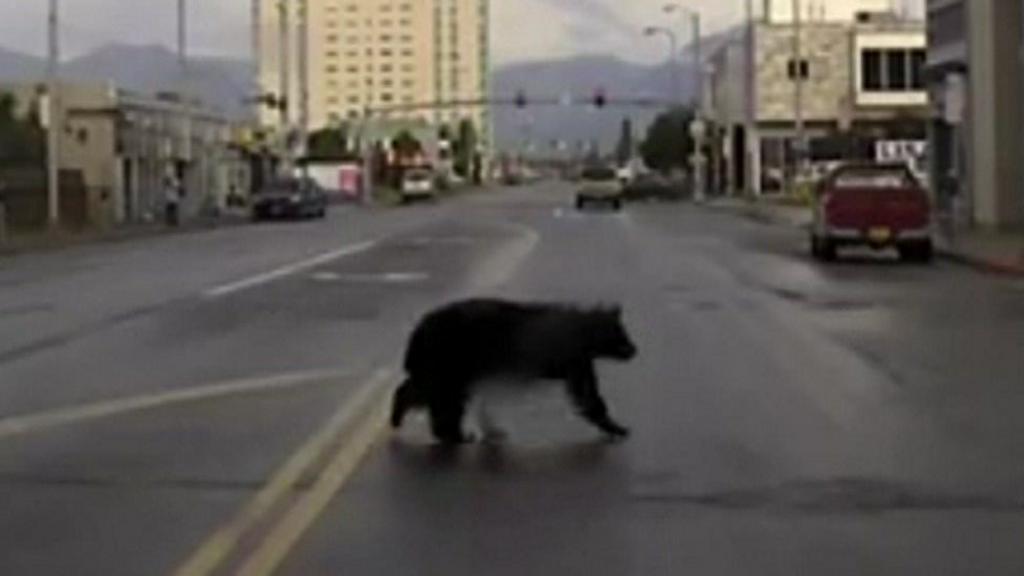 The bear was seen going on a tour of the state's largest city, Anchorage.