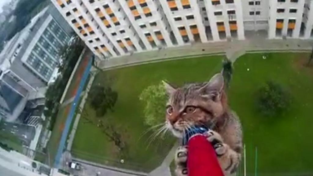 Check out the dramatic rescue of this lucky cat from the 12th floor of a building in Singapore.