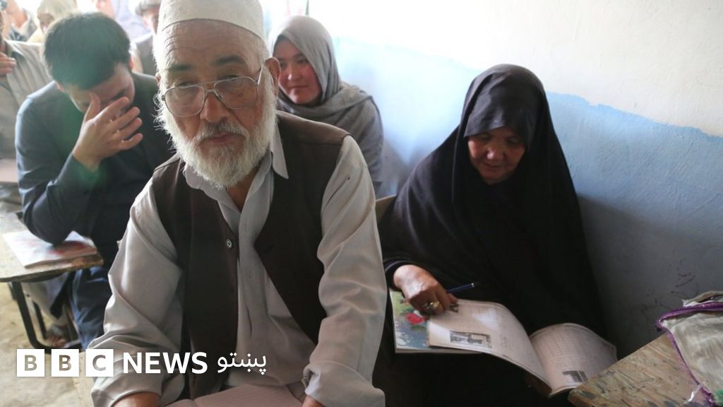 دا ښځه او مېړه له یوې میاشتې د سواد زدکړې دې کورس ته راځي