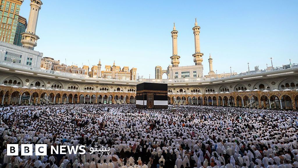 د عکس تشریح، د جون پر شپږمه په مکه مکرمه کې د لوی اختر لمانځه لپاره حاجیان یو ځای شوي وو.