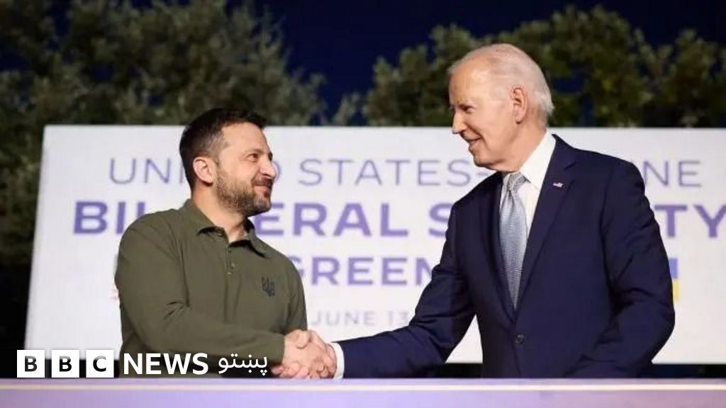 همدارنګه په ایټالیا کې د جې-۷ ډلې په سرمشریزه کې د اوکرایین ولسمشر ولودیمیر زېلېنسکي او ښاغلي بایډن ۱۰ کلن دوه اړخیز امنیتي تړون د اوکرایین او متحده ایالاتو ترمنځ لاسلیک کړ او کېیف دا یو "تاریخي" هغه وباله.