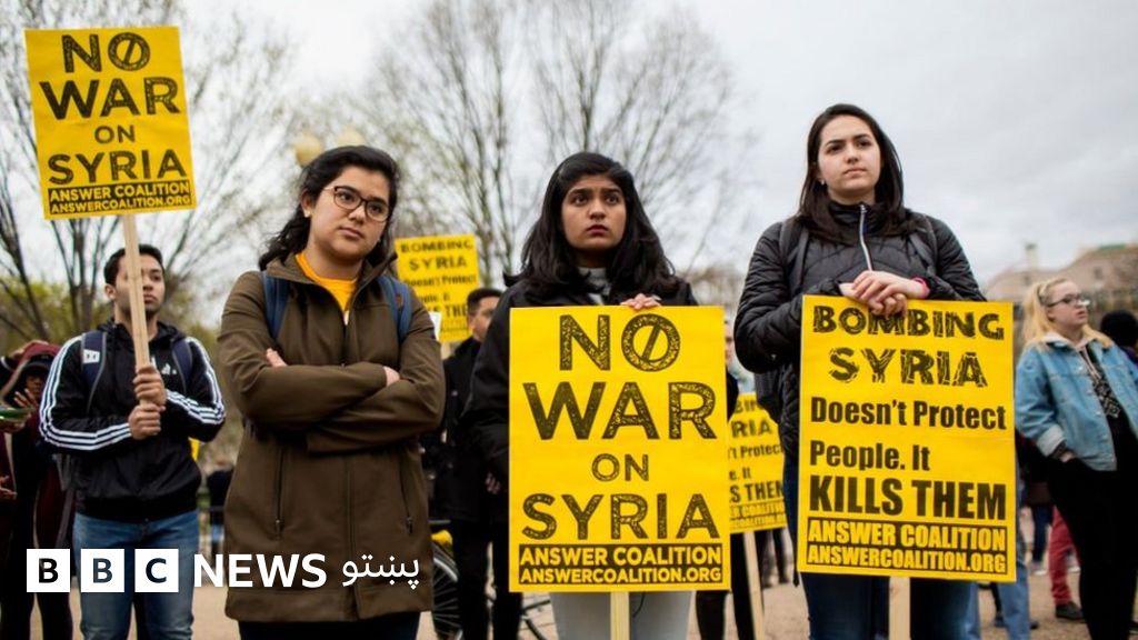 د سوریې پر یوې اډې د امریکا د توغندیز برید پرضد د امریکا بېلابېلو ښارونو کې مظاهرې وشوې.