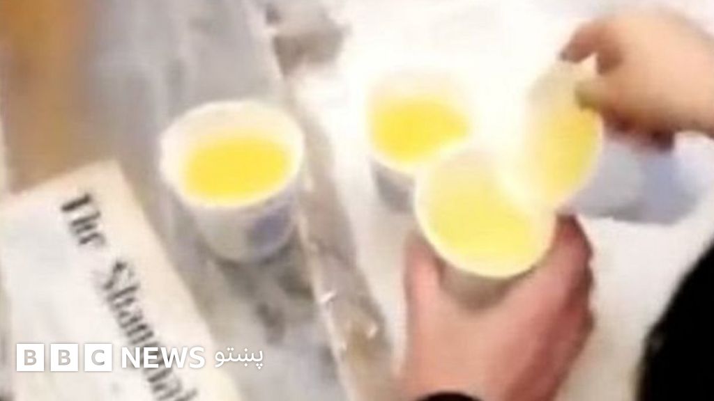د چین ختیځ کوتچو ښار کې د کورونو د بیارغولو د توکو اړوند شرکت نور کارکوونکو ته پلاستیکي پیالو کې ژیړبخن اوبلن څیز ورڅښل کېږي.