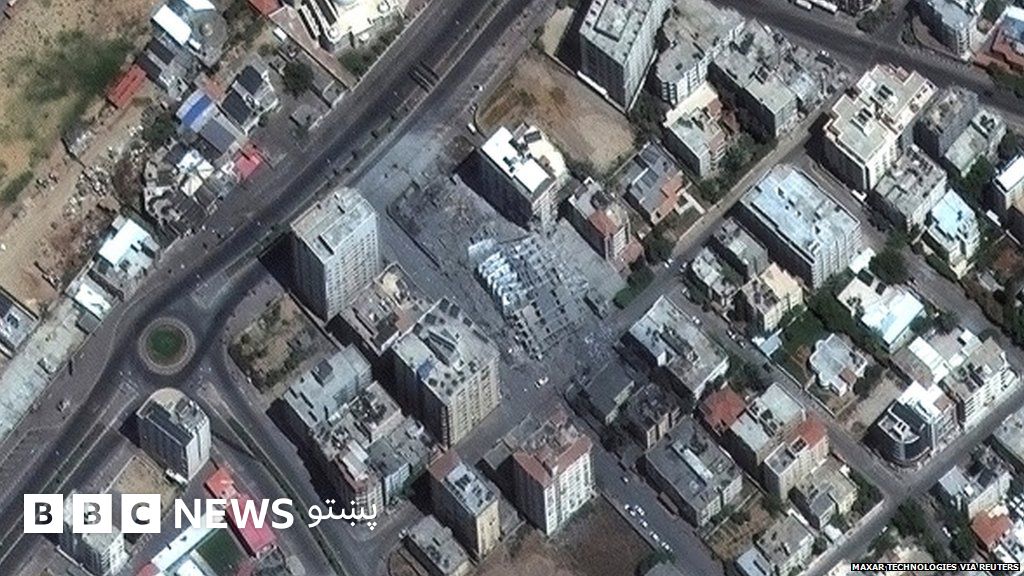د سټیلایټ له لارې اخیستل شویو تصویرونو کې د هغې لوړ پوړیزې ودانۍ پاتې شوني لیدل کېږي چې د اسراييل له برید وروسته اخیستل شوي. له دې بریدونو وروسته ګڼ شمېر فلسطینیان له خپلو مېنو تېښتې ته اړ شوي دي.