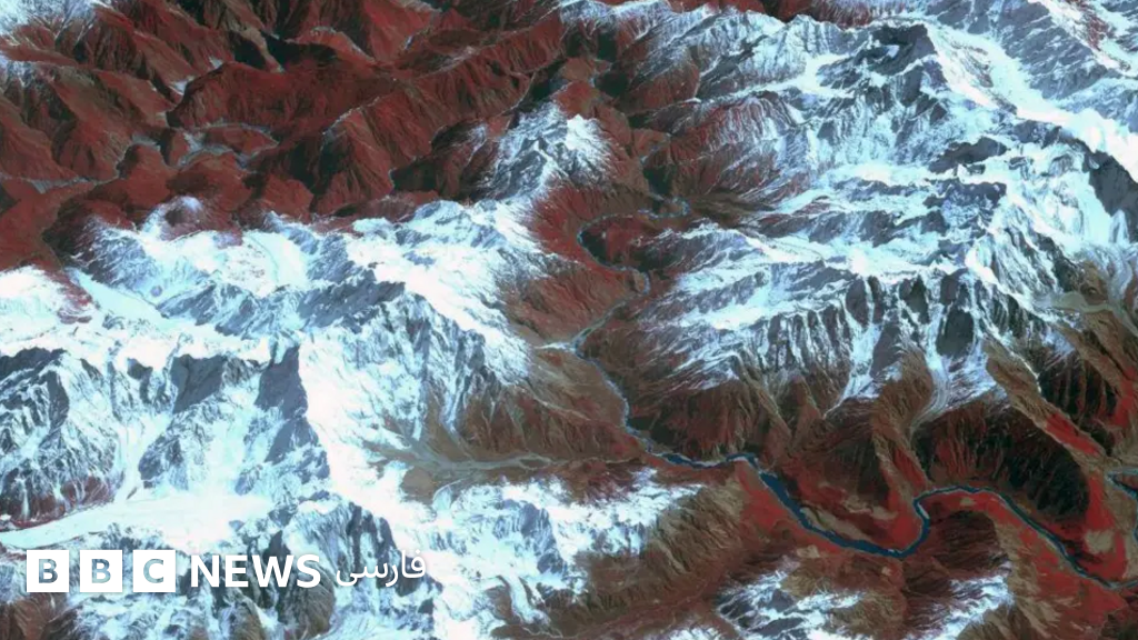 نمای هوایی از کوه‌های قهوه‌ای رنگ و نیمه برفی
