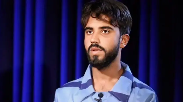 توضیح تصویر، عکس گرفته شده از ویدیو پخش شده از اعترافات عامر رامش از شبکه استانی سیستان و بلوچستان