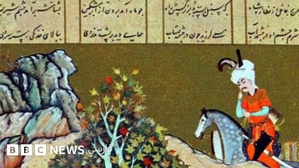 توضیح تصویر، نسخه دست‌نویس و مصور پنج گنج نظامی متعلق به حدود دویست سال پیش