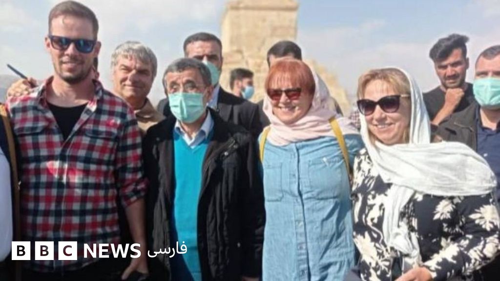 محمود احمدی نژاد با توریست‌های خارجی در پاسارگاد